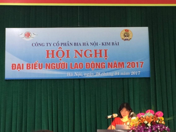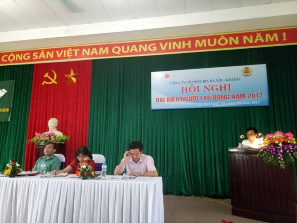 Thực hiện sự chỉ đạo của Công đoàn Tổng công ty CP Bia - Rượu - NGK Hà Nội , ngày 28/4/2017 tại Hội trường Công ty CP Bia Hà Nội - Kim Bài , Hội nghị Đại biểu người lao động Công ty cổ phần Bia Hà Nội - Kim Bài năm 2017 tổ chức với sự tham dự của 51 đại biểu chính thức đại diện cho 212 CBCNV lao động trong công ty.